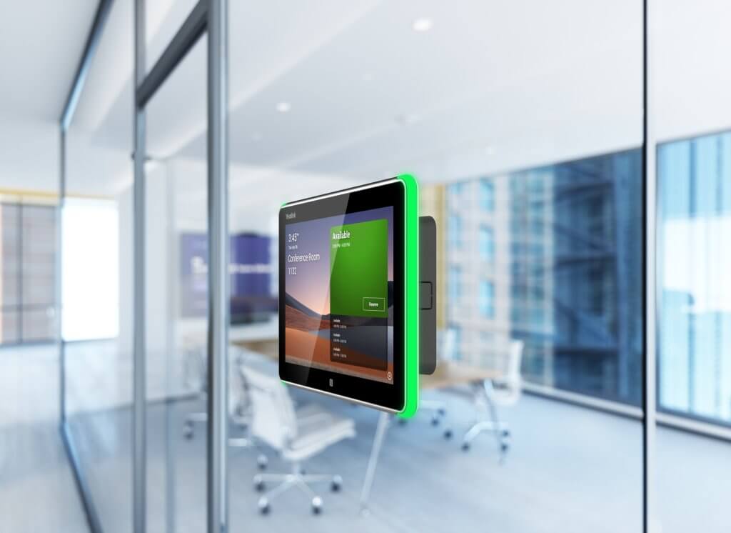 Yealink RoomPanel to 8-calowy tablet z system operacyjnym Android 9.0, programowalnym (kolory RGB) obwodowym podświetleniem LED dla podglądu statusu zajętości pomieszczenia. Posiada 10-punktowy ekran dotykowy, moduł WIFI 2×2 MIMO 802.11ac, Bluetooth 5.0, wbudowane NFC oraz czytnik RFID, a także mikrofony z głośnikami. Urządzenie obsługuje zasilanie przez PoE i zapewnia wiele możliwości instalacji, na powierzchni każdego typu.