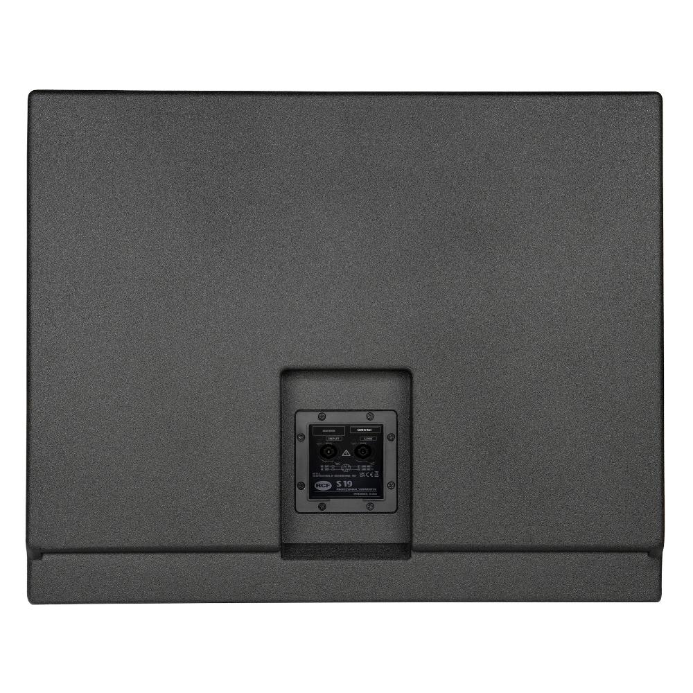 S 19 to pojedynczy subwoofer o dużej mocy 19″, odpowiedni do systemów nagłośnienia instalacyjnego RCF. Konstrukcja bass-reflex zapewnia skuteczną odpowiedź akustyczną do 30 Hz. Wysokiej jakości obudowa ze sklejki jest wykończona czarną, wytrzymałą powłoką polimocznikową i zabezpieczona metalową kratką malowaną proszkowo. Wpuszczany panel wejściowy jest wyposażony w dwa złącza Speakon NL4, co umożliwia szybkie i bezpieczne podłączenie. Dostarczono adapter do montażu na słupku M20 na górze obudowy i uchwyty po obu stronach. Oba modele można ustawiać jeden na drugim i mają kardioidalny układ przetworników, co zapewnia lepsze tłumienie tylne.